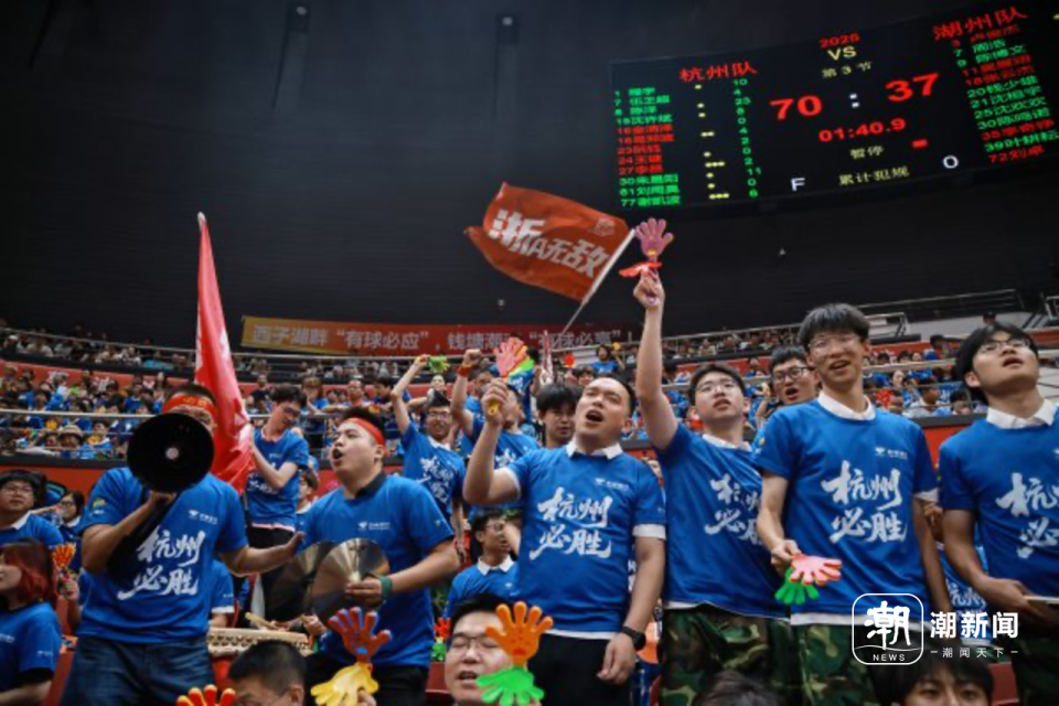 揭幕战,杭州队在奥体中心体育馆上万观众的见证下取得了开门红,现场的火爆氛围让人印象深刻;而杭州队的第二个主场,则是选择在了拱墅运河体育公园体育馆,选择这里同样也有深意——这里此前是杭州赛区总决赛的所在地,彼时,杭州各区县的球迷们就曾挤占在这个体育馆里,为各自的主队加油助威,如今,他们又为杭州队结成了统一战线。昨晚,全场数千杭州球迷为自己共同的主队杭州队加油。